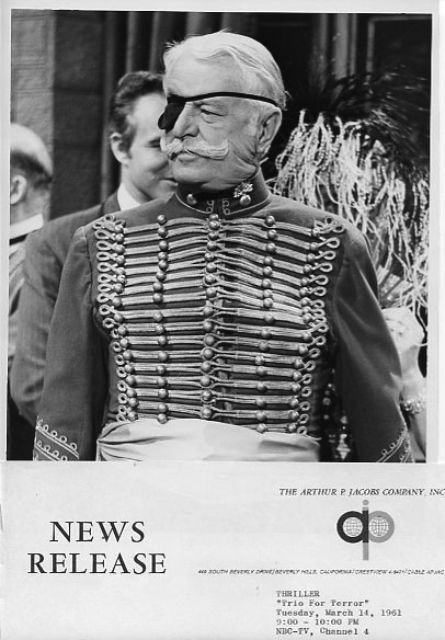 JS: I think I was most surprised by how often the show bounced around tonally and thematically. A number of episodes—and I'm not just talking about the bad ones—I could never have picked out of a lineup as a Thriller had I seen them out of context. But oddly enough, some of the ones called out as decidedly non-Thriller ("The Guilty Men," the Edward Andrews black comedies) were episodes that I enjoyed, so it didn't bother me. I think if I had sat down with the specific goal of writing about a horror series, I would have been disappointed how often horror wasn't on the menu. But I was open to accepting each and every episode as a Thriller, and rate it based on whether I enjoyed it, and not whether it lived up to some pre-conceived notion of what the show was supposed to be.